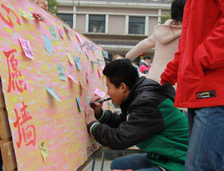 12月15日,南昌大學(xué)護(hù)理學(xué)院在醫(yī)學(xué)院新世紀(jì)廣場舉行了2013大學(xué)生社會(huì)實(shí)踐評(píng)選成果校園巡展。此次巡展共展出17塊展板,其中包括6塊獲獎(jiǎng)優(yōu)秀團(tuán)隊(duì)介紹板、6塊“愛佑童心”志愿者隊(duì)“愛佑之行”展板、3塊“愛·一起來”宣傳海報(bào)板、一塊留言板和一塊心愿墻展板。展板形象展現(xiàn)了“愛佑童心”三下鄉(xiāng)團(tuán)隊(duì)實(shí)踐全過程,從前期的緊張準(zhǔn)備、中期實(shí)踐到后期的精心總結(jié),將“愛佑童心”六支實(shí)踐隊(duì)伍的活動(dòng)詳細(xì)地展現(xiàn)給大家。最后,參觀者也在心愿墻為先心患兒寫下最真摯的祝福,“愛佑童心,加油”“祝愿先心患兒早日康復(fù)”“藍(lán)天白云之下,我們與愛佑同行”等等祝福心愿擠滿心愿墻。
