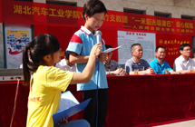 7月10日上午,湖北汽車工業(yè)學(xué)院“V益·青竹”暑期愛(ài)心支教團(tuán)的大學(xué)生們?cè)谑Y家堰鎮(zhèn)中原小學(xué)舉行愛(ài)心捐贈(zèng)活動(dòng)。湖北汽車工業(yè)學(xué)院副院長(zhǎng)閔祖?zhèn)魍、縣教育局副局長(zhǎng)周躍忠同志以及相關(guān)領(lǐng)導(dǎo)都趕來(lái)支持。