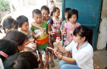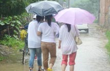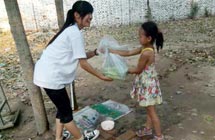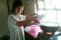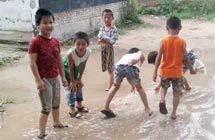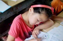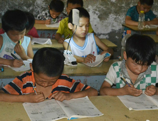 鄉(xiāng)村小學,沒有體育器材,沒有娛樂設施,孩子們只能選擇自娛自樂。有次,志愿者們看到孩子們用一根細樹棍,一塊石柱,就玩起了翹翹板。每到夜晚,志愿者的住處就擠滿了學生,大家或做游戲,或一起用筆記本電腦看哆啦A夢,從孩子們看動畫片的那份專注,志愿者們看得出來,孩子們很少能看到這種動畫片。天陰教室昏暗,加上學校經常斷電,孩子們不得不在陰暗的環(huán)境中上課。老師拿來自己的小臺燈給在角落的孩子照明,即使在這樣的情況下,孩子們依然學習很認真。申倩老師應該是最受歡迎的啦,她多次收到孩子們的“示愛書信”,那些小紙條上往往寫著“音樂老師你唱的歌很好聽,我喜歡你”