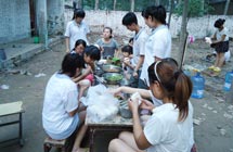 志愿者宋文靜是付里莊小學手語老師,是團隊隊員和孩子們公認的富有童趣的一小老師。她經常陪孩子們做游戲,陪他們看哆啦A夢。但就是這樣一位老師,上了課堂卻像換了個人似的,非常嚴厲。志愿者王蒙苗是付里莊小學口才勵志課老師。課堂上,她認真教學,課堂下用勵志故事激勵孩子們努力學習。因為經常照顧生病的孩子,孩子們認為她最有愛的一個老師。志愿者孔令陵是后勤人員之一及封丘支教教務主任。她每天都會在五點去最近的商店買菜,然后摘菜、洗菜,做整個團隊和部分孩子的飯菜,保障全隊生活
