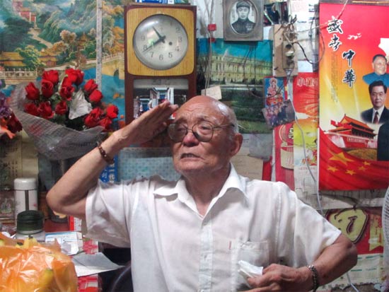 在陳相德家中,墻上掛的是中國地圖、中國工農(nóng)紅軍地圖,堂屋里掛著中國偉人畫像、開國十大元帥畫像,顯示出他對(duì)抗戰(zhàn)歷史的銘記。陳相德在抗日戰(zhàn)場(chǎng)上穿越槍林彈雨,沐浴硝煙彌漫,親眼目睹過日軍飛機(jī)被擊落,F(xiàn)在提起當(dāng)年的情形,他仍無比激動(dòng)。