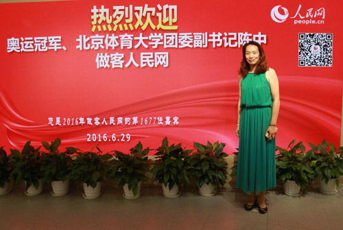 奧運(yùn)冠軍、北京體育大學(xué)團(tuán)委副書(shū)記陳中做客人民網(wǎng)強(qiáng)國(guó)論壇(代睿 攝)