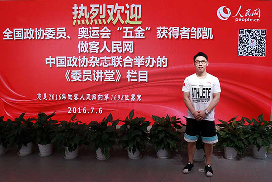 全國政協(xié)委員、奧運會“五金”獲得者鄒凱(代睿 攝)