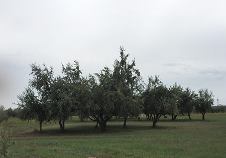 沙棗樹看上去不繁茂、樹干矮、粗皮,卻可以抗御著烈風(fēng),阻擋沙漠的前移,在缺水、多風(fēng)沙、鹽堿嚴(yán)重、土壤貧瘠的環(huán)境里頑強(qiáng)地活下來(lái),撐起沙海里一片綠蔭,從不向瘋狂的風(fēng)沙低頭。