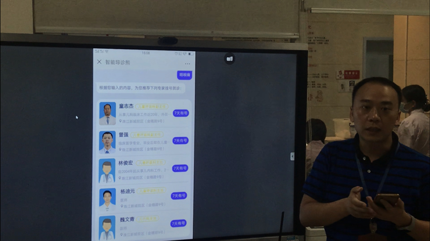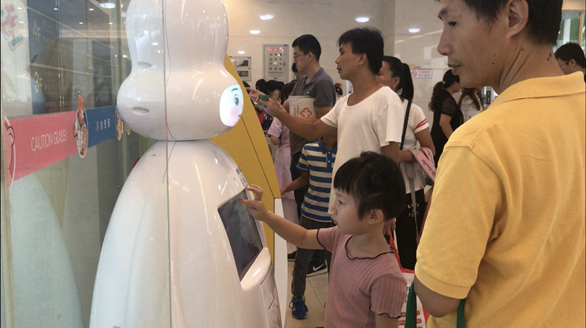 在廣州市婦女兒童醫(yī)療中心,與手機客戶端同步的導(dǎo)診機器人“咪姆熊”,還幫助患者導(dǎo)航至醫(yī)院的每個位置;根據(jù)指令,物流機器人“諾亞”可以自行乘坐電梯,將醫(yī)護人員所需藥品送達指定科室;新一代AI平臺能讀X光片和超聲數(shù)據(jù),還能在30秒內(nèi)診斷出2種眼科疾病......