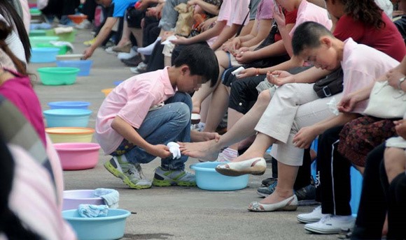 某校組織學(xué)生為父母洗腳(圖片源自網(wǎng)絡(luò))