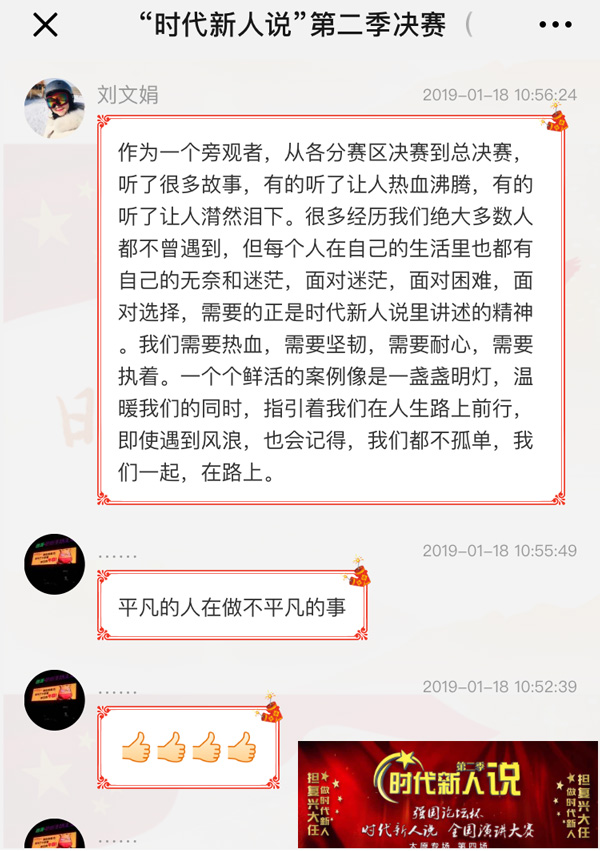“每個人在生活里也都有無奈,面對迷茫,面對困難,需要的正是時代新人說里講述的精神!本W(wǎng)友劉文娟留言說。