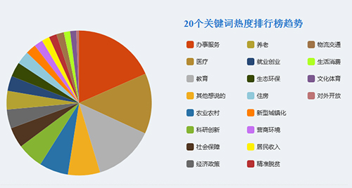 圍繞群眾關(guān)切,本次征集活動(dòng)共設(shè)置了20類(lèi)話(huà)題。辦事服務(wù)、醫(yī)療、教育是網(wǎng)友關(guān)注的重點(diǎn),位居話(huà)題榜前三位?蒲袆(chuàng)新、農(nóng)業(yè)農(nóng)村、社會(huì)保障、養(yǎng)老、經(jīng)濟(jì)政策、生態(tài)環(huán)保、住房分列四到十位。