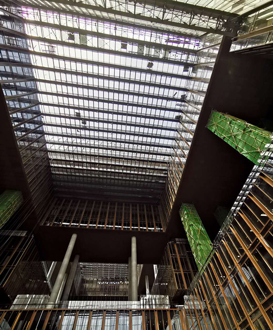 “傳統的腳手架是從下往上搭建,但經過我們亞投行項目青年員工的創(chuàng)新,改為從上往下搭建,改變了架體的結構形式,將本來需要60米高的滿堂架改為3米高的吊掛架,成功解決了首層樓板對架體承載力不足難題! 31歲的項目總工程師劉瑞軍每每談到創(chuàng)新使用吊掛腳手架裝修大跨度采光頂幕墻時,都神情飛揚,同時感慨萬千。