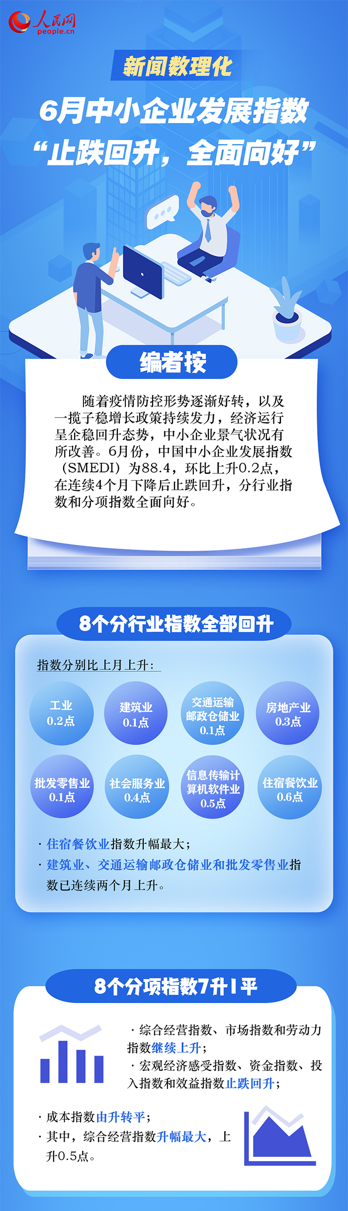 新聞數(shù)理化|6月中小企業(yè)發(fā)展指數(shù)全面向好 住宿餐飲業(yè)漲幅最大