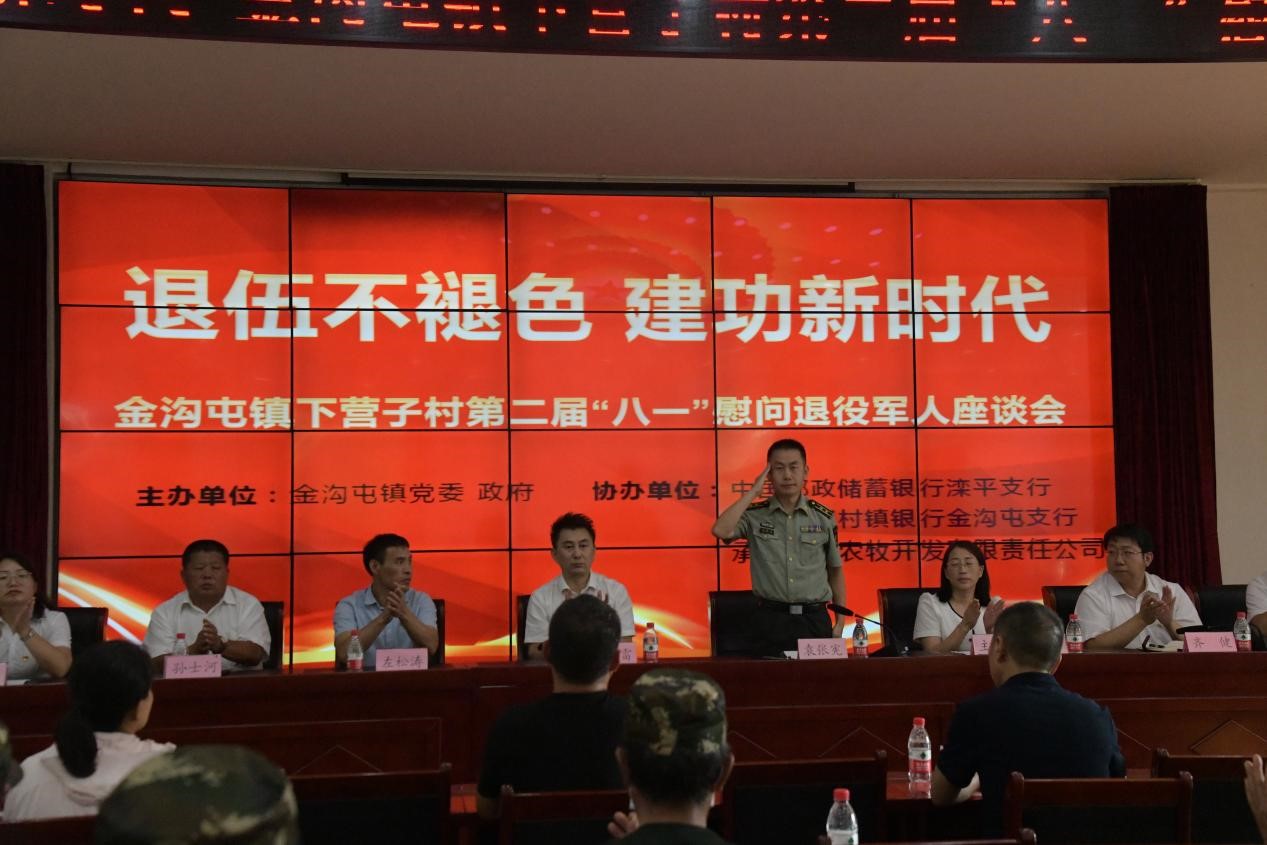 8月1日下午,灤平縣金溝屯鎮(zhèn)下?tīng)I(yíng)子村聯(lián)合愛(ài)心企業(yè)中國(guó)郵政儲(chǔ)蓄銀行灤平支行、灤平盛陽(yáng)村鎮(zhèn)銀行金溝屯支行和承德久財(cái)農(nóng)牧開(kāi)發(fā)有限責(zé)任公司共同舉辦了“退伍不褪色 建功新時(shí)代”第二屆“八一”慰問(wèn)退役軍人座談會(huì);顒(dòng)現(xiàn)場(chǎng),大家歡聚一堂,共同慶祝中國(guó)人民解放軍建軍95周年,共敘魚(yú)水深情,并為優(yōu)秀退役軍人頒發(fā)榮譽(yù)證書(shū)。 王海琦 郎朗 攝