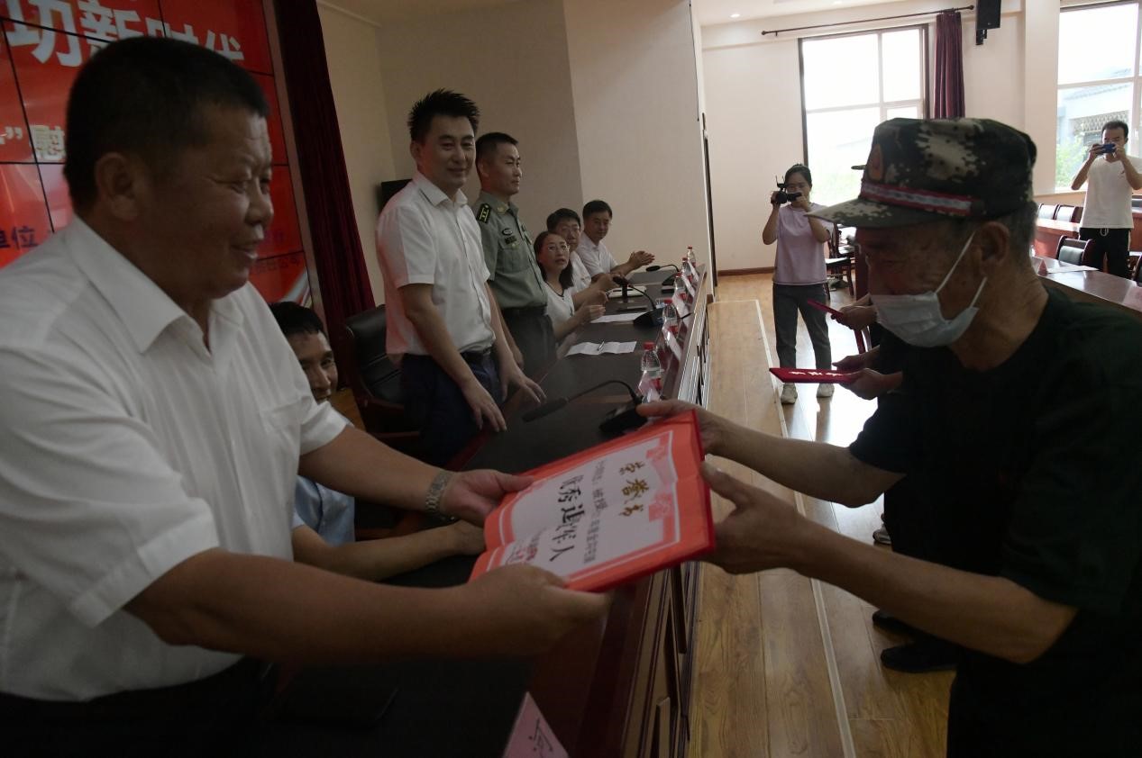 8月1日下午,灤平縣金溝屯鎮(zhèn)下?tīng)I(yíng)子村聯(lián)合愛(ài)心企業(yè)中國(guó)郵政儲(chǔ)蓄銀行灤平支行、灤平盛陽(yáng)村鎮(zhèn)銀行金溝屯支行和承德久財(cái)農(nóng)牧開(kāi)發(fā)有限責(zé)任公司共同舉辦了“退伍不褪色 建功新時(shí)代”第二屆“八一”慰問(wèn)退役軍人座談會(huì);顒(dòng)現(xiàn)場(chǎng),大家歡聚一堂,共同慶祝中國(guó)人民解放軍建軍95周年,共敘魚(yú)水深情,并為優(yōu)秀退役軍人頒發(fā)榮譽(yù)證書(shū)。 王海琦 郎朗 攝