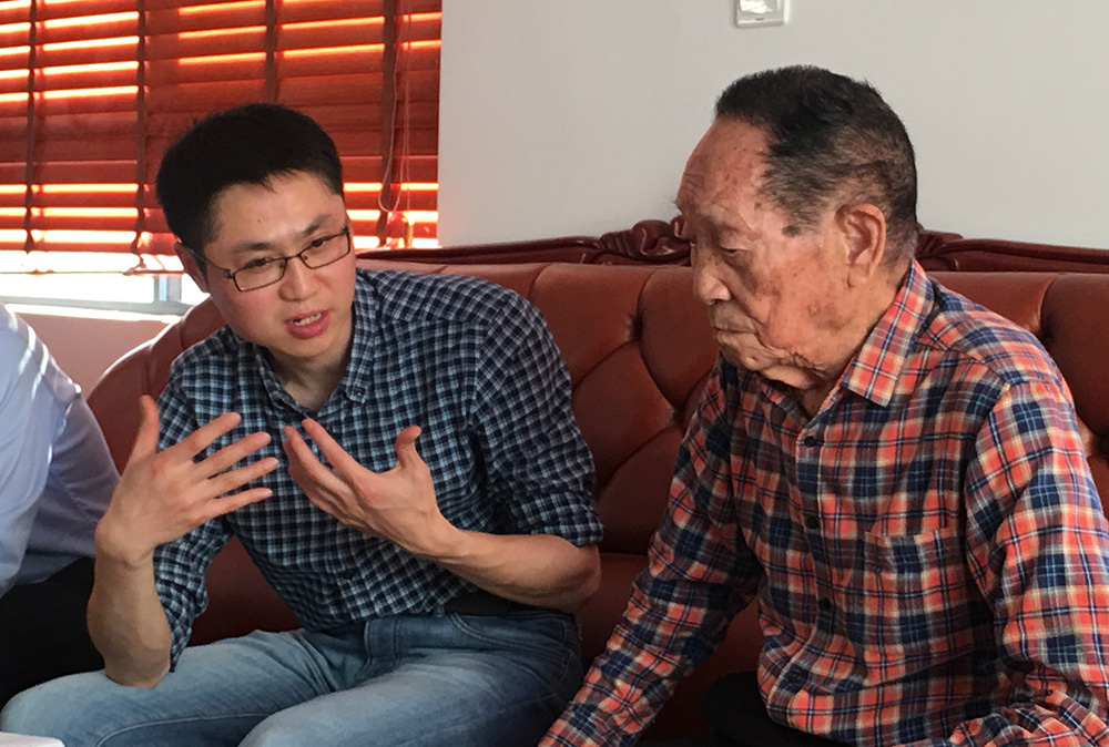 王克劍向袁隆平院士匯報科研進(jìn)展。受訪者供圖