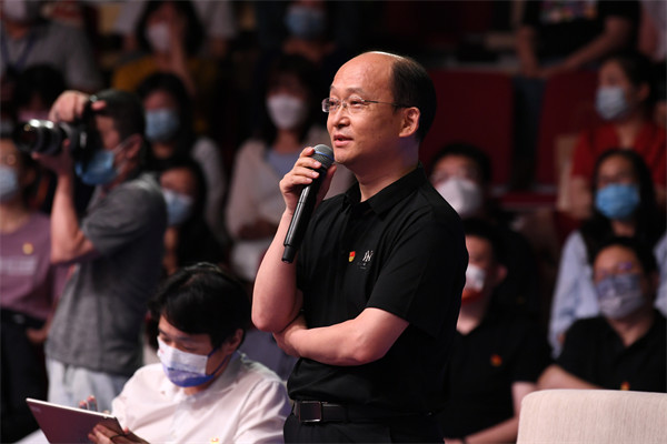特邀嘉賓中央和國(guó)家機(jī)關(guān)工委基層組織建設(shè)指導(dǎo)部一處處長(zhǎng)黃文明向選手提問(wèn)