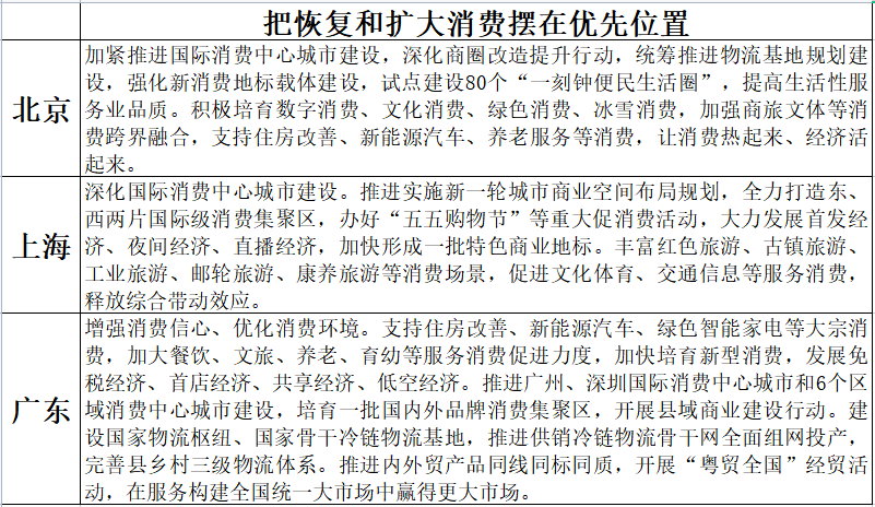 針對近期中央經(jīng)濟工作會議提出的“要把恢復和擴大消費擺在優(yōu)先位置”,地方政府將擴大內(nèi)需尤其是促進消費恢復作為2023年政策的重點。