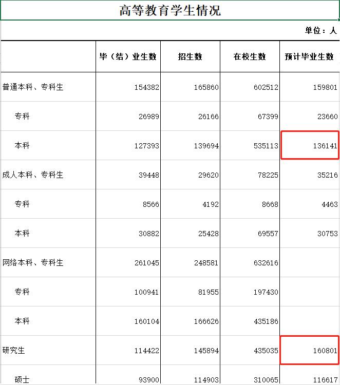 北京市教育委員會網(wǎng)站3月20日印發(fā)的《2022-2023學(xué)年度北京教育事業(yè)發(fā)展統(tǒng)計概況》數(shù)據(jù)顯示,2023年北京碩博畢業(yè)生預(yù)計為16.08萬人,普通本科畢業(yè)生預(yù)計為13.61萬人,是否會出現(xiàn)“學(xué)歷倒掛”的現(xiàn)象?對此,北京外國語大學(xué)就業(yè)創(chuàng)業(yè)中心主任蘭建華表示,北京的情況不具有普遍性,從高等教育招收情況來看,2022年全國共招收研究生124.25萬人,普通本科招生467.94萬人,本科招生遠(yuǎn)大于碩博招生規(guī)模。碩博研究生仍是塔尖人才的形勢并未改變。